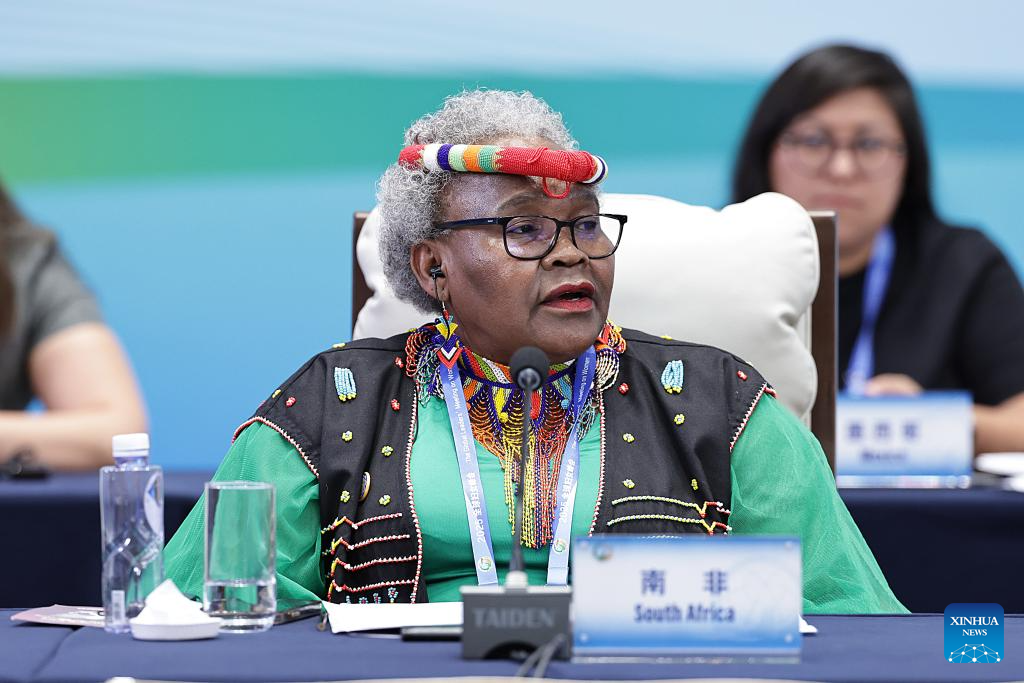 A representative from South Africa attends the plenary meeting of the Global Leaders' Meeting on Women in Beijing, capital of China, Oct. 13, 2025. (Xinhua/Zhang Yuwei)