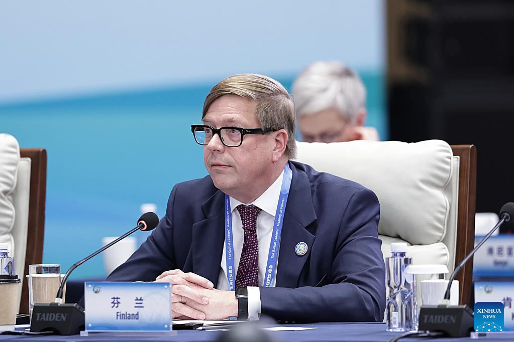 A representative from Finland attends the plenary meeting of the Global Leaders' Meeting on Women in Beijing, capital of China, Oct. 13, 2025. (Xinhua/Zhang Yuwei)