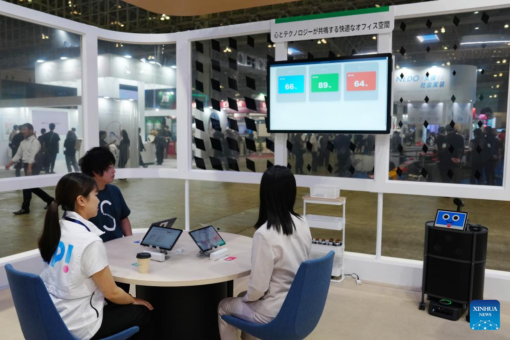 This photo shows a view of an intelligent office space developed by Mitsubishi Electric at the Combined Exhibition of Advanced Technologies (CEATEC) 2025 in Chiba Prefecture, Japan, on Oct. 14, 2025. The CEATEC 2025 kicked off here on Tuesday. (Xinhua/Jia Haocheng)