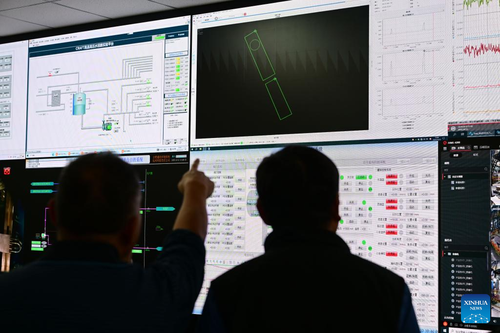 Experts work at a testing site of the Divertor Prototype of CRAFT (Comprehensive Research Facility for Fusion Technology) in Hefei, east China's Anhui Province, on Oct. 13, 2025. China has achieved a significant milestone in next-generation "artificial sun" technology development, with one of its key subsystems having passed expert review and acceptance procedures on Monday.