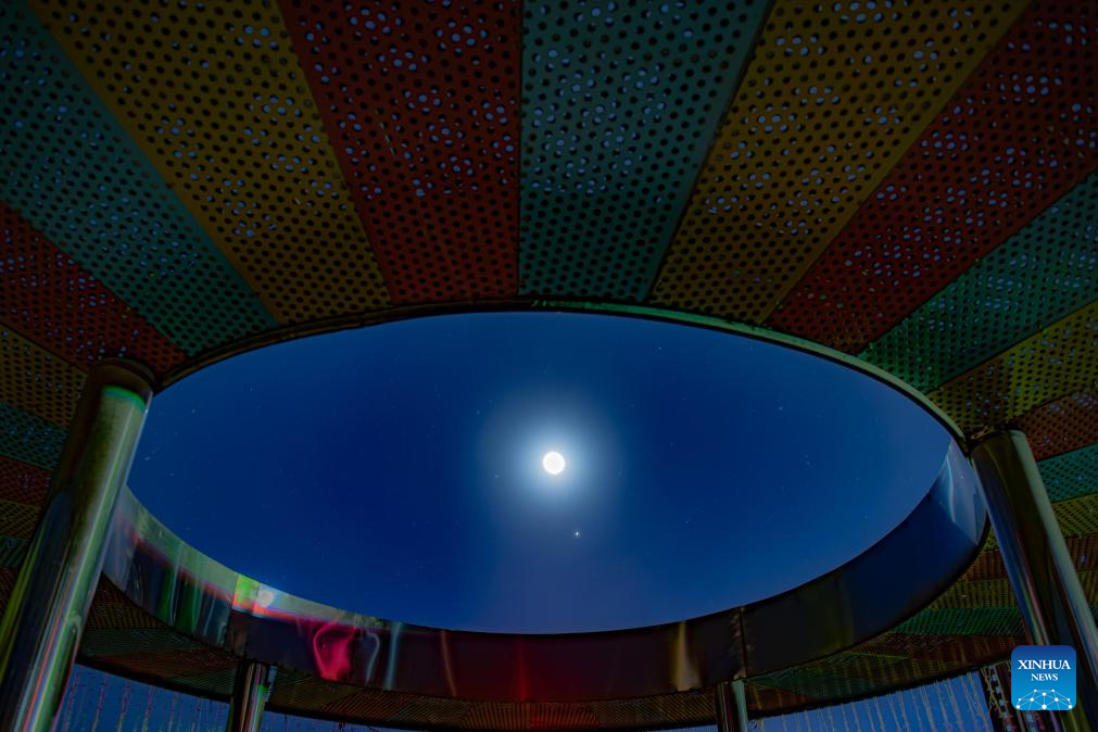 This photo taken on Oct. 14, 2025 shows the planet of Jupiter next to the moon in the sky over Qiqihar City, northeast China's Heilongjiang Province. (Photo by Wang Yonggang/Xinhua)