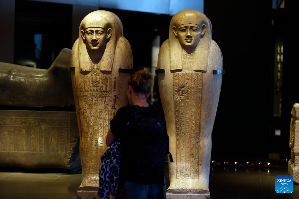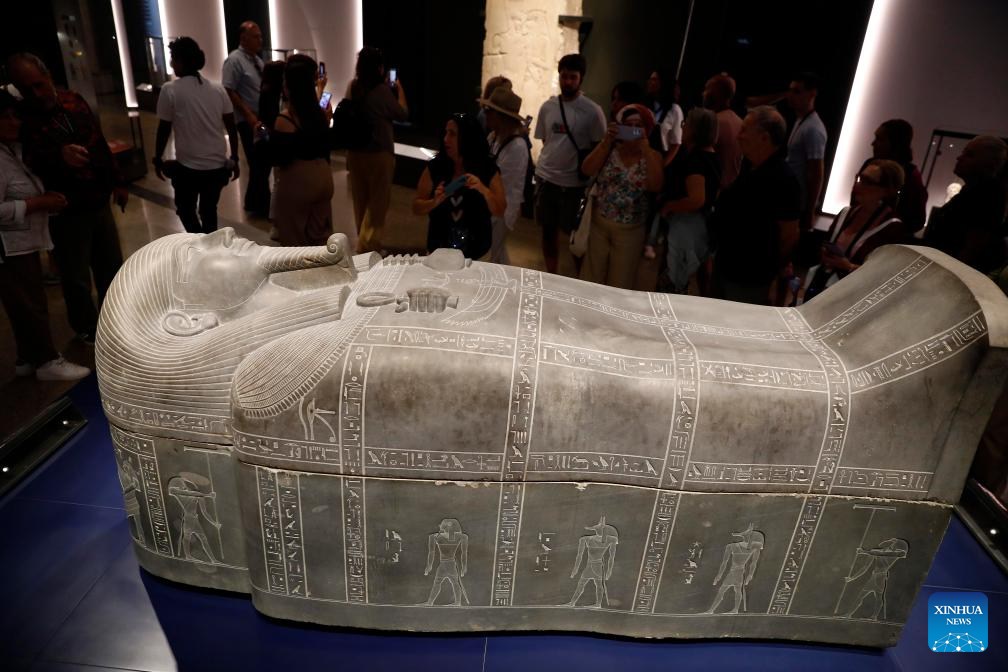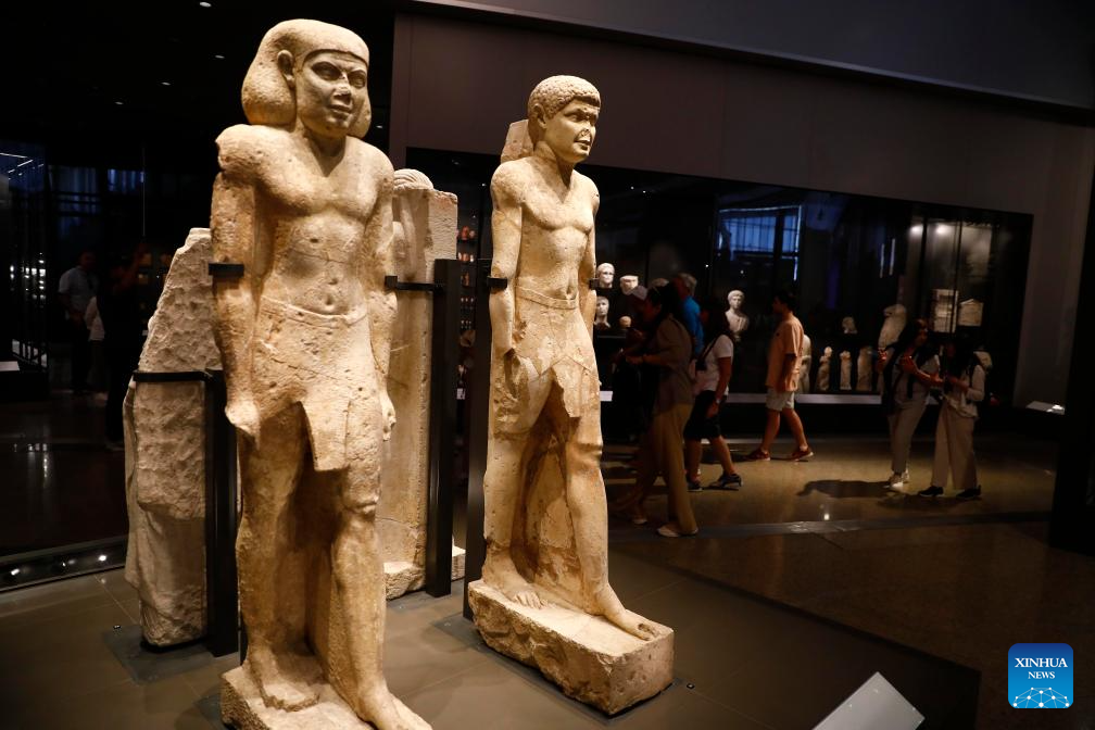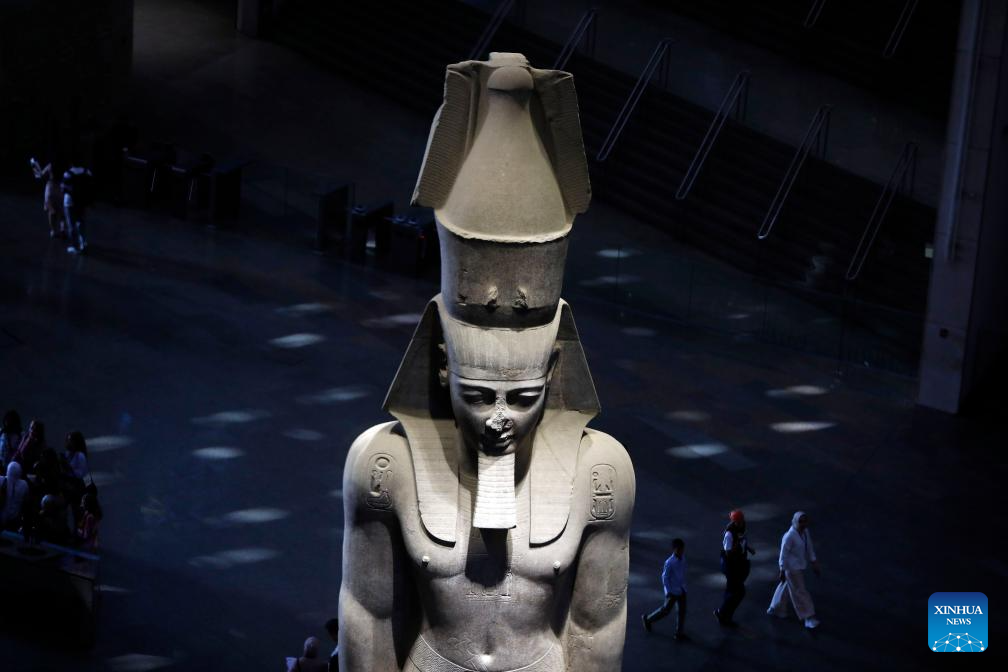 Photo taken on Oct. 14, 2025 shows exhibits at the Grand Egyptian Museum in Giza, Egypt. Egypt's Grand Egyptian Museum (GEM) is temporarily closed to the public from Oct. 15 to Nov. 3 in preparation for its official opening, scheduled for early November, according to an announcement published Monday on the museum's official website. (Xinhua/Ahmed Gomaa)