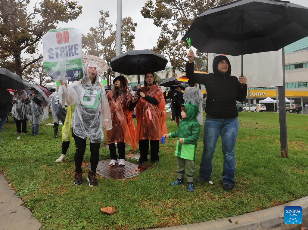 LOS ANGELES, Oct. 14 (Xinhua) -- Tens of thousands of Kaiser Permanente healthcare workers went on strike Tuesday morning across the U.S. West Coast.