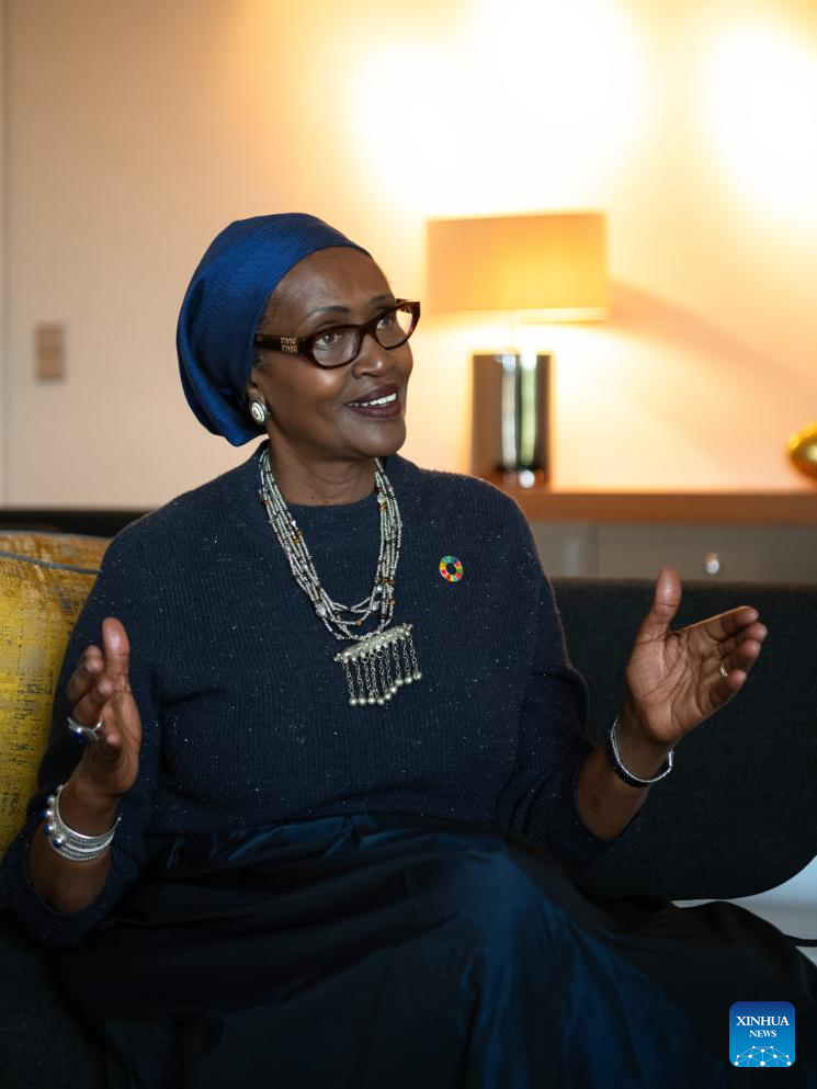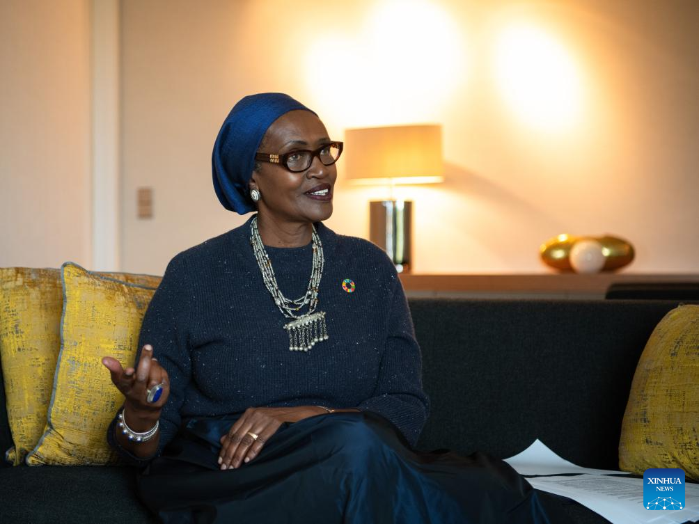 Winnie Byanyima, executive director of UNAIDS, speaks during an exclusive interview with Xinhua in Berlin, Germany, Oct. 11, 2025. (Xinhua/Zhang Haofu)