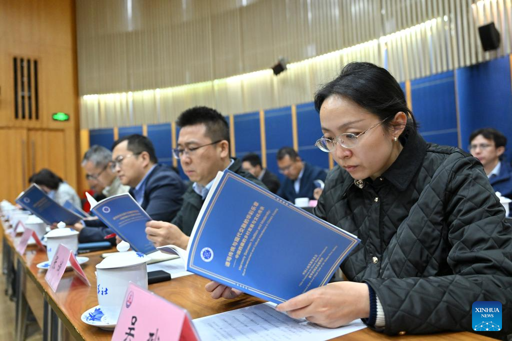 Delegates read copies of the think tank report "Harmony Between Tradition and Modernity: Rural Development and Cultural Inheritance in China's Xizang" during an expert symposium in Beijing, capital of China, Oct. 16, 2025. A think tank report released on Thursday hailed the practical achievements of rural development in southwest China's Xizang Autonomous Region since its founding 60 years ago.