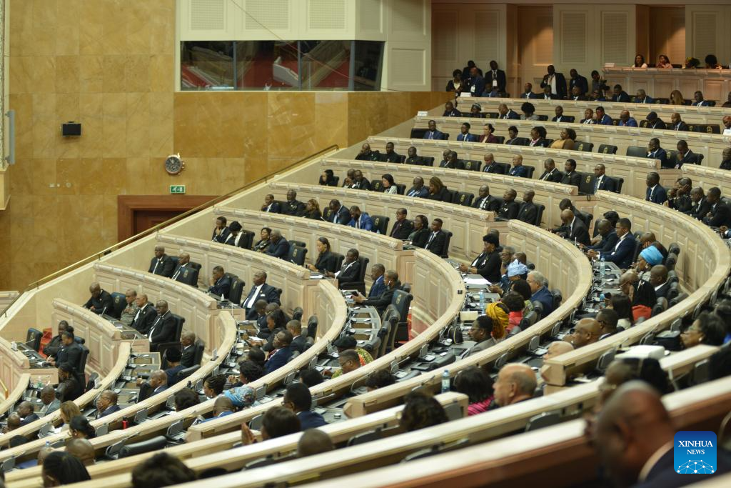 Members of the National Assembly attend the opening of the new parliamentary year in Luanda, Angola, Oct. 15, 2025. Angolan president Joao Lourenco has said that the celebration of the 50th anniversary of the country's independence will be "an occasion to exalt the historical journey of Angola, revisiting achievements and challenges." Delivering the State of the Nation address on Wednesday at the opening of the new parliamentary year, Lourenco said that on Nov. 11, the Angolan people will celebrate 50 years of independence, 50 years as a free people, masters of their own destiny. (Photo by Julio Kikebu/Xinhua)