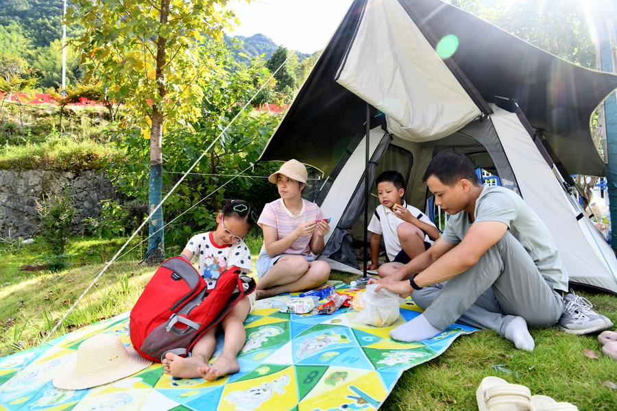 BEIJING, Oct. 16 (Xinhua) -- Ranging from the hiking trails of the Qinghai-Tibet Plateau in western China to coastal camping sites, and from family-friendly forest adventures to recreational fishing, outdoor venues and activities have ignited consumer markets and spawned new industrial frontiers across China.