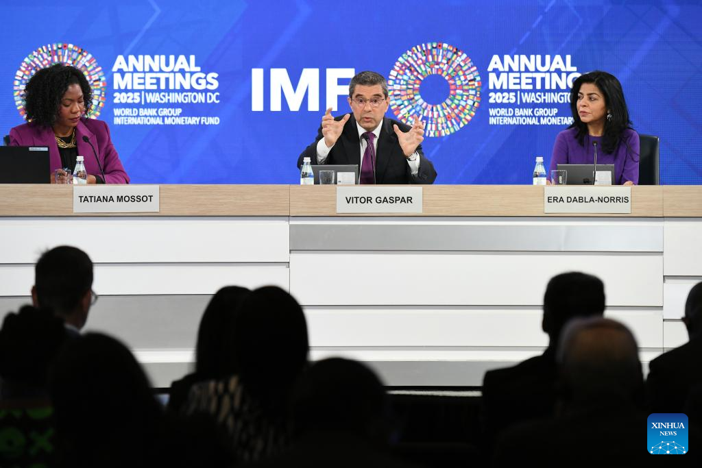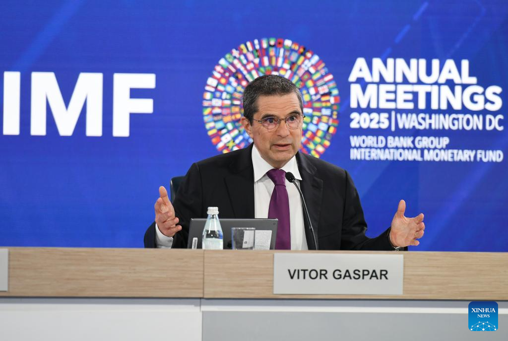 Vitor Gaspar, outgoing director of the IMF's fiscal affairs department, speaks at a press briefing on Fiscal Monitor in Washington, D.C., the United States, Oct. 15, 2025. The fiscal chief of the International Monetary Fund (IMF) said it is more important for governments to "deliver value for money" than simply to spend more, noting that spending efficiency is an "extremely important element" in public finances. "The benefits, the growth dividends are particularly strong when spending is efficient, when spending efficiency improves," Vitor Gaspar told Xinhua in a recent interview. (Xinhua/Li Rui)