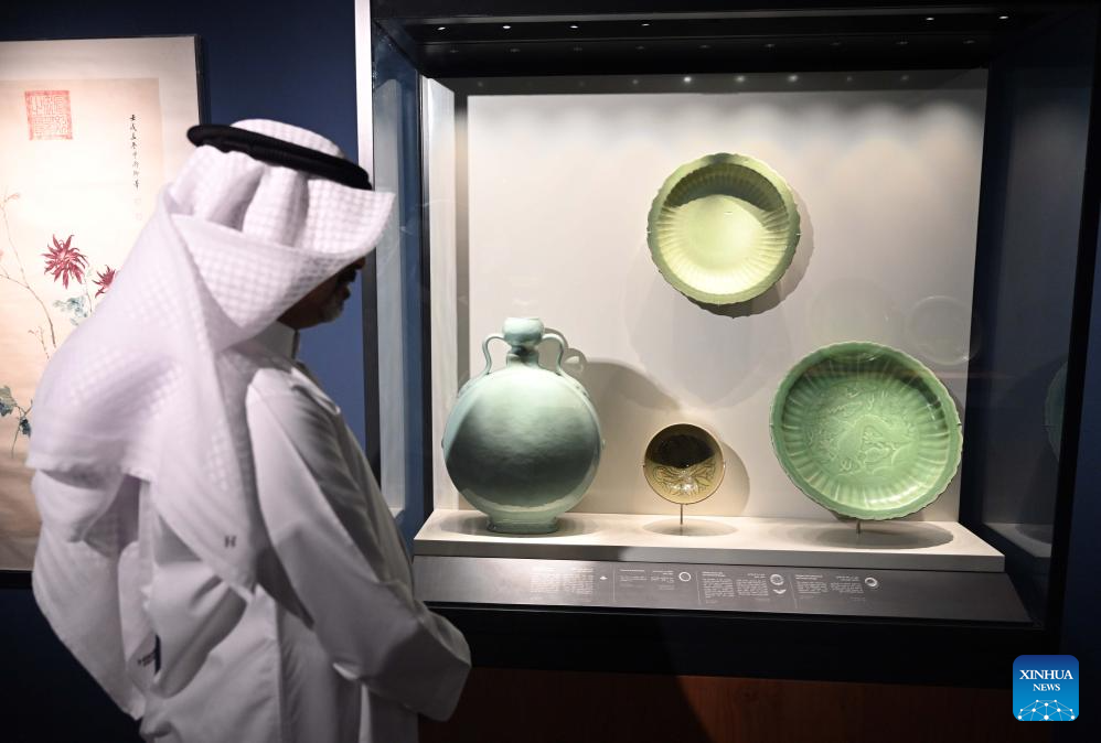 KUWAIT CITY, Oct. 15 (Xinhua) -- The Chinese art exhibition "Distant and Close" opened on Wednesday at Kuwait's Dar al-Athar al-Islamiyyah, or House of Islamic Antiquities, a major public museum in Kuwait City. The exhibition, running through 2026, showcases the historical and cultural ties between China and Kuwait.