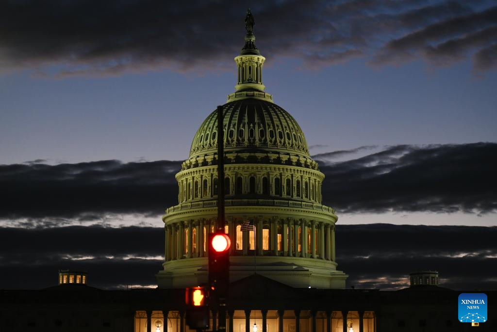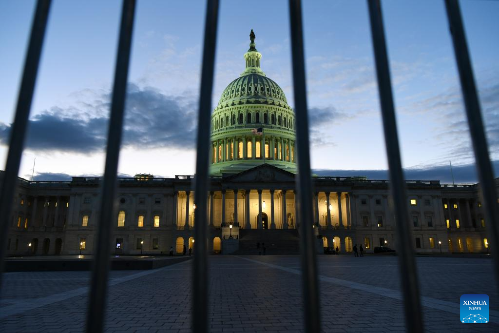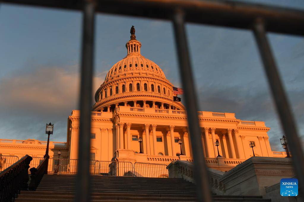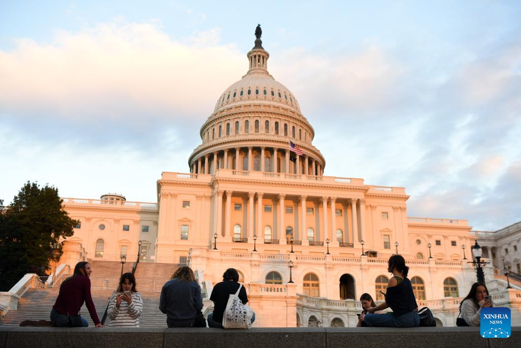 The U.S. Capitol building is seen at sunset in Washington, D.C., the United States, on Oct. 15, 2025. (Xinhua/Li Rui)