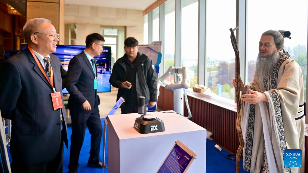 A participant interacts with a humanoid robot "Confucius" at the Shenyang Robot Conference 2025 in Shenyang, northeast China's Liaoning Province, Oct. 17, 2025. The two-day event kicked off here on Friday. (Xinhua/Wu Qinghao)