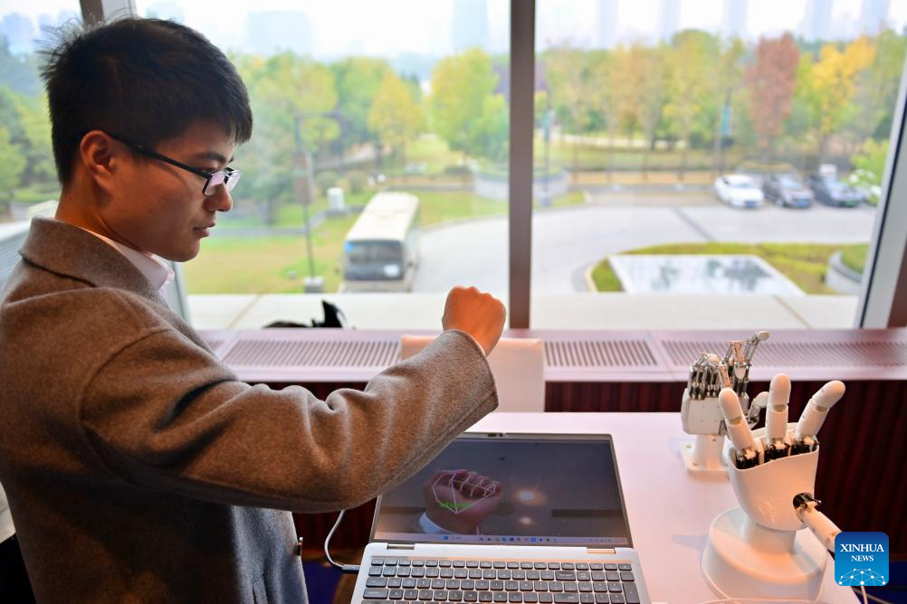 A staff member demonstrates a bionic hand at the Shenyang Robot Conference 2025 in Shenyang, northeast China's Liaoning Province, Oct. 17, 2025. The two-day event kicked off here on Friday. (Xinhua/Wu Qinghao)