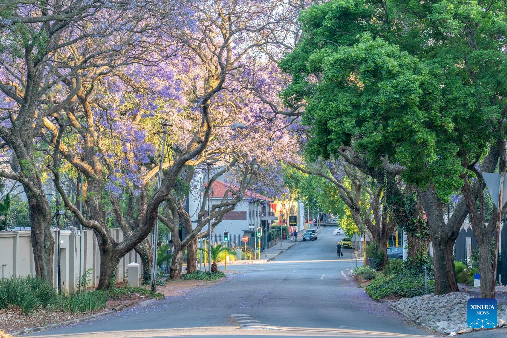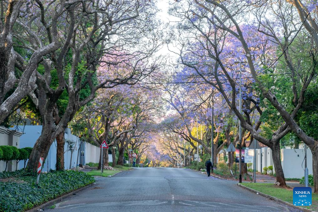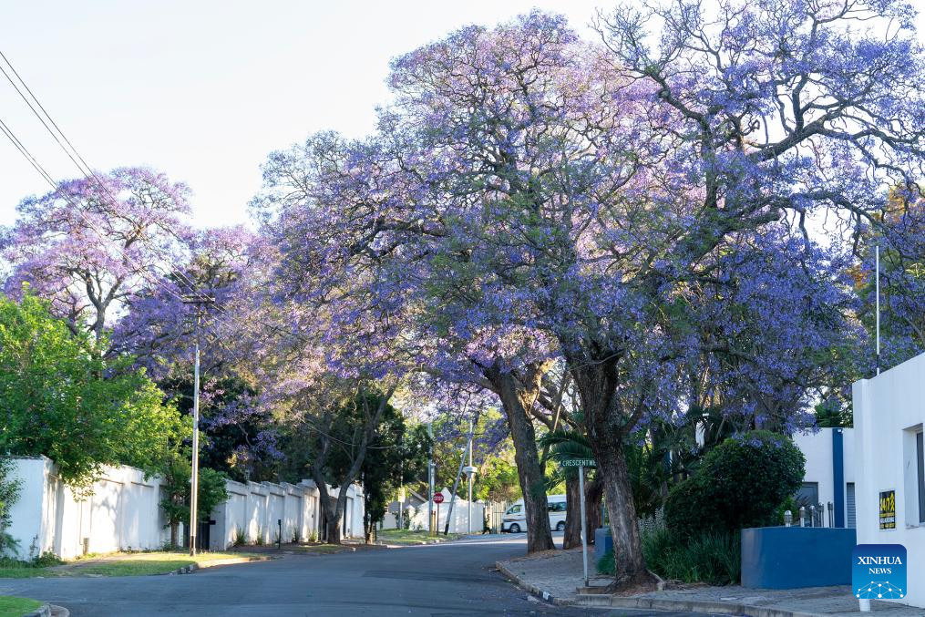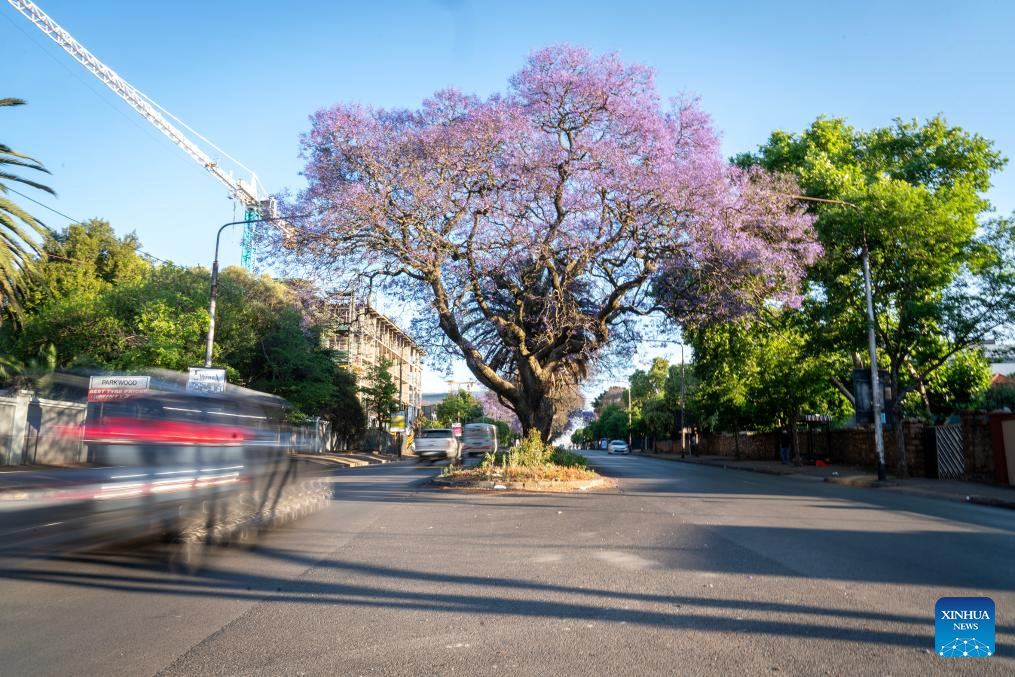 This photo taken on Oct. 16, 2025 shows blooming jacaranda trees in Johannesburg, South Africa. The jacaranda trees here bloom from mid-October to early November each year. (Photo by Shiraaz Mohamed/Xinhua)