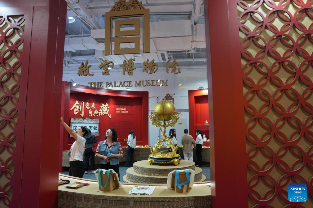 People visit the booth of the Palace Museum at Liangzhu Cultural and Creative Bazaar in Hangzhou, east China's Zhejiang Province, Oct. 17, 2025. The bazaar opened here on Friday. It features activities such as exhibitions, panel discussions and fashion shows, showcasing cultural and creative achievements from China and abroad. (Xinhua/Huang Zongzhi)