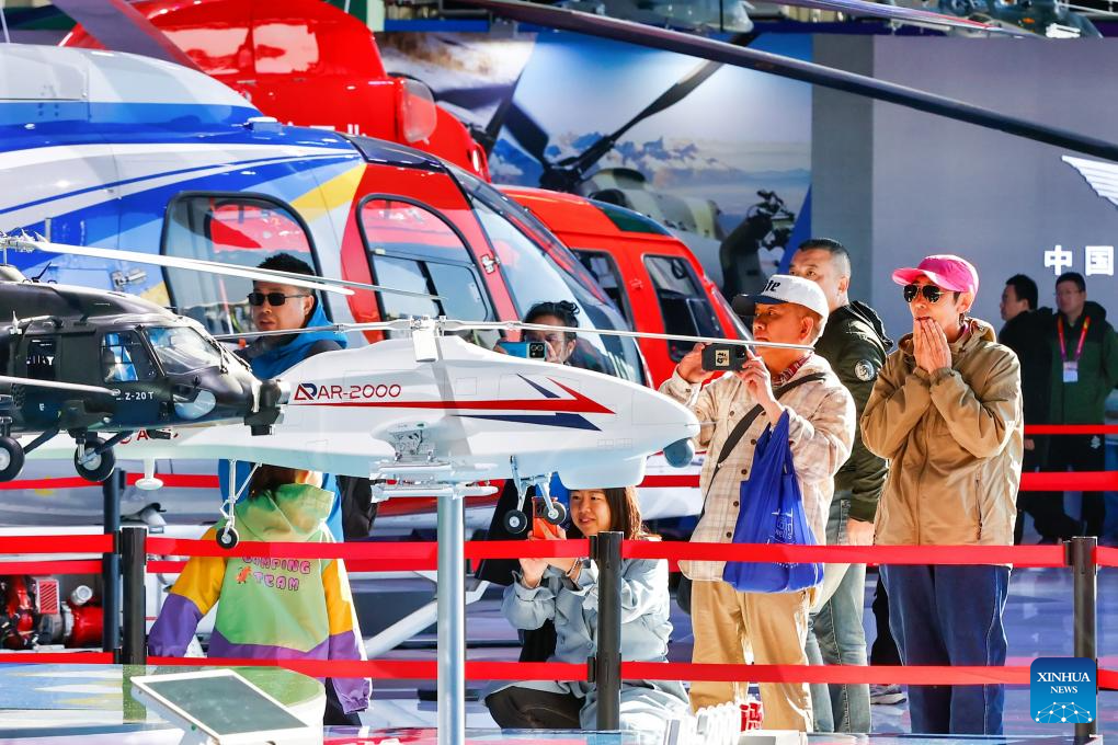 Visitors are seen during the 7th China Helicopter Exposition in north China's Tianjin Municipality, Oct. 18, 2025. The exposition opened to the general public on Saturday. (Photo by Du Penghui/Xinhua)