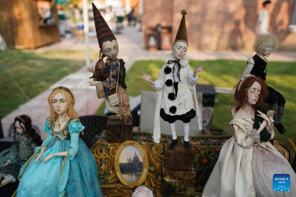 Ceramic handicrafts from Russia are pictured at a ceramic carnival held as a sideline event of the 2025 China Jingdezhen International Ceramic Expo in Jingdezhen, east China's Jiangxi Province, Oct. 17, 2025. The 2025 China Jingdezhen International Ceramic Expo opened on Oct. 18 in Jingdezhen, an eastern Chinese city famed as the "porcelain capital," attracting more than 1,000 buyers from home and abroad. (Xinhua/Zhou Mi)