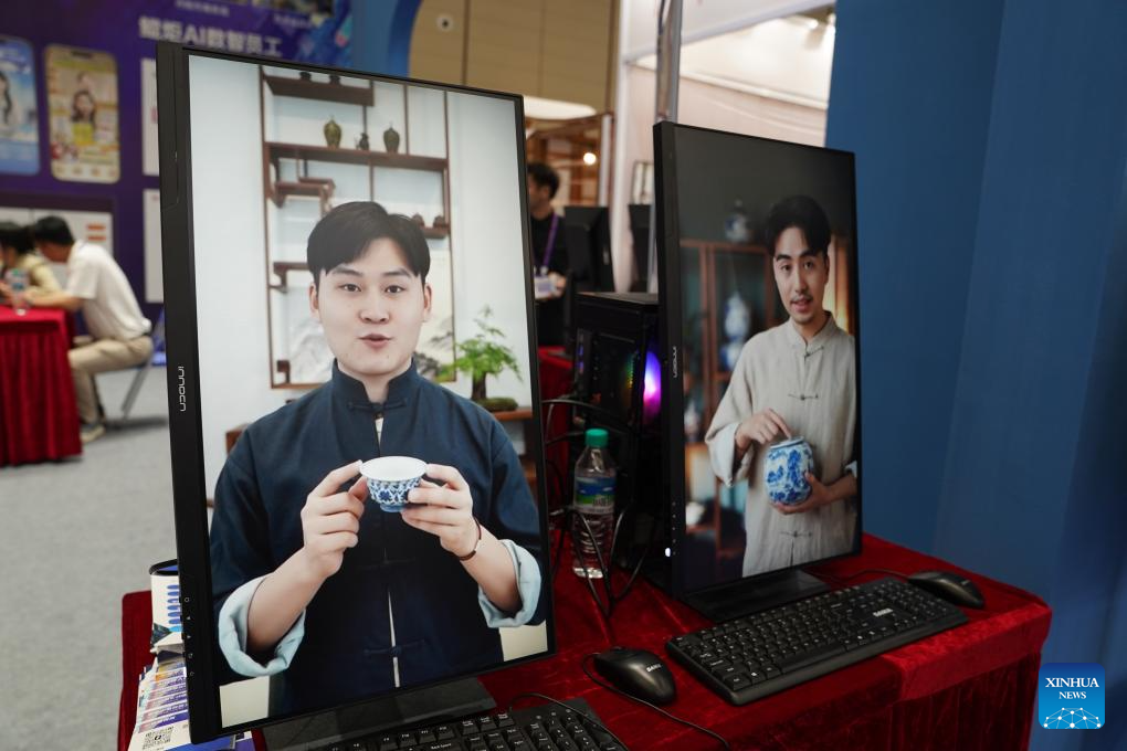 An AI-powered porcelain selling system is displayed during the 2025 China Jingdezhen International Ceramic Expo in Jingdezhen, east China's Jiangxi Province, Oct. 18, 2025. The 2025 China Jingdezhen International Ceramic Expo opened on Oct. 18 in Jingdezhen, an eastern Chinese city famed as the "porcelain capital," attracting more than 1,000 buyers from home and abroad. (Xinhua/Zhou Mi)