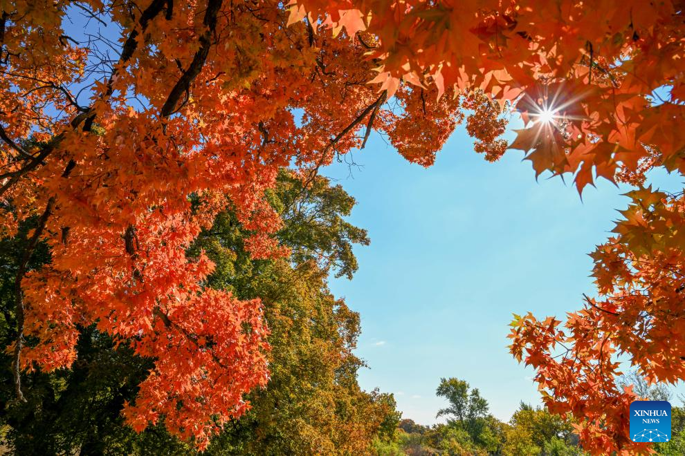 This photo taken on Oct. 18, 2025 shows the autumn scenery of a forest park in Horqin Left Wing Rear Banner of Tongliao City, north China's Inner Mongolia Autonomous Region. (Xinhua/Lian Zhen)
