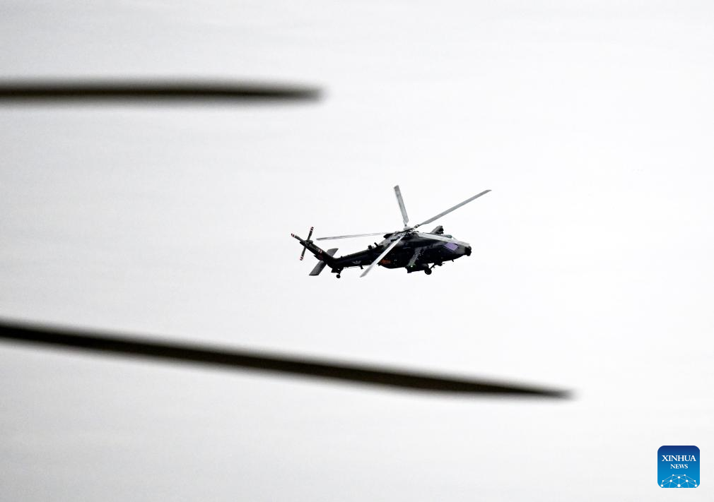 A Z-20T helicopter performs during the 7th China Helicopter Exposition in north China's Tianjin Municipality, Oct. 16, 2025. The exposition opened on Thursday in north China's Tianjin Municipality, featuring an expanded low-altitude economy exhibition area and debuting multiple military helicopters, civilian helicopters and other low-altitude aircraft. (Xinhua/Zhao Zishuo)