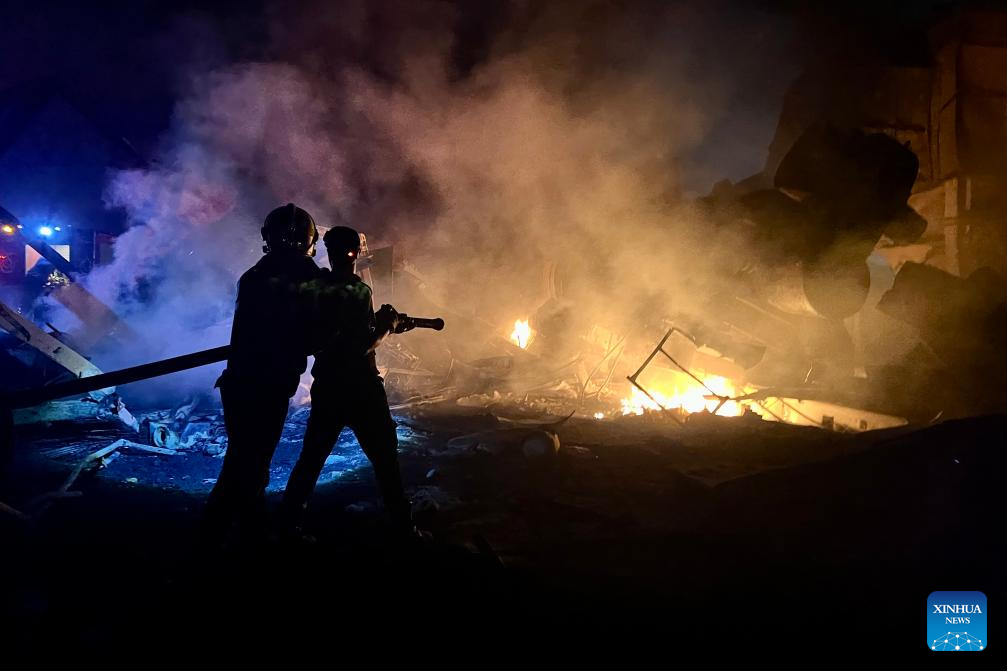 An apartment block hit by a gas explosion is pictured in Bucharest, Romania, Oct. 17, 2025. Three people were killed and at least 13 others injured after an explosion ripped through an apartment block in the Romanian capital here on Friday, authorities said. (Photo by Cristian Cristel/Xinhua)