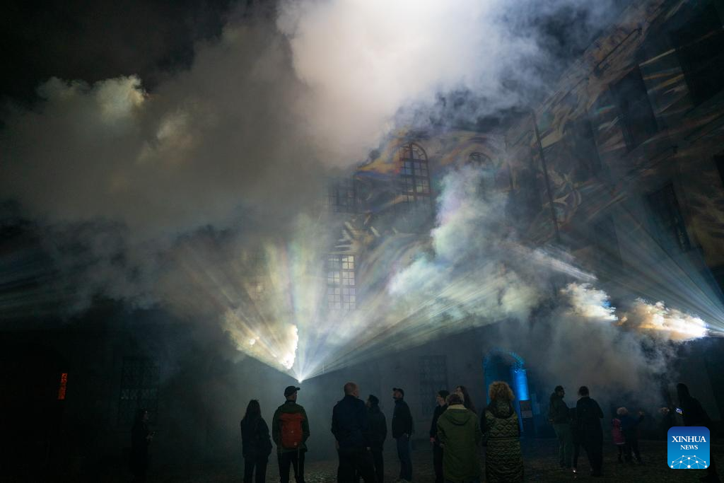 Visitors watch a projection of video mapping during the Signal Festival in Prague, the Czech Republic, Oct. 17, 2025. The streets and historic landmarks of Prague have once again come alive with light and digital art as the 13th edition of the Signal Festival opened on Thursday evening. (Photo by Dana Kesnerova/Xinhua)