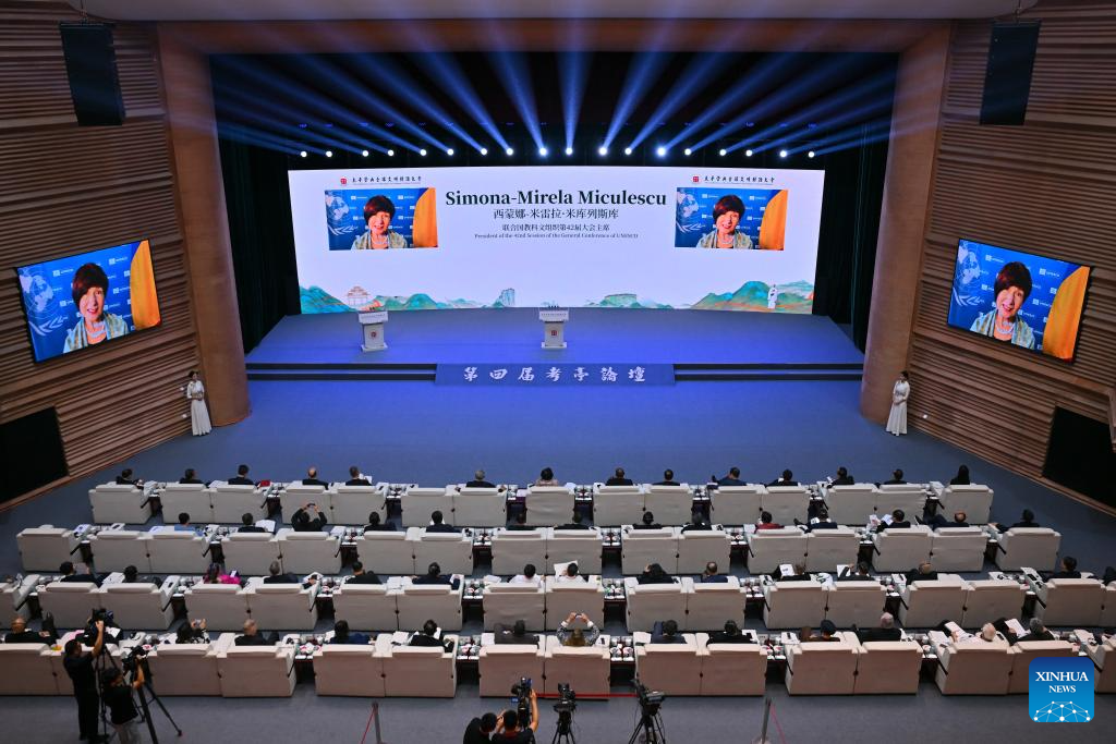 Simona-Mirela Miculescu, president of the 42nd Session of the General Conference of UNESCO, addresses the Conference on Zhu Xi's Philosophy and Dialogue of Global Civilization in Nanping City, southeast China's Fujian Province, Oct. 18, 2025. The Conference on Zhu Xi's Philosophy and Dialogue of Global Civilization was held here on Saturday.