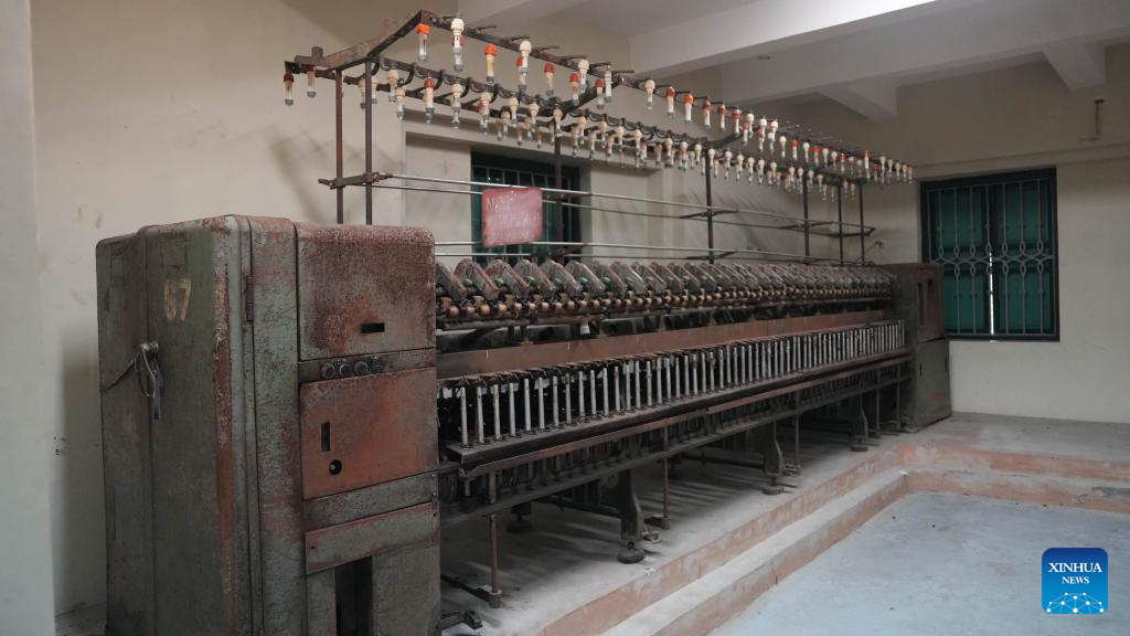 This photo taken on Oct. 9, 2025 shows Chinese-made textile equipment at Vietnam Textile and Garment Traditional House in Nam Dinh, Ninh Binh province, Vietnam. (Xinhua/Hu Jiali)
