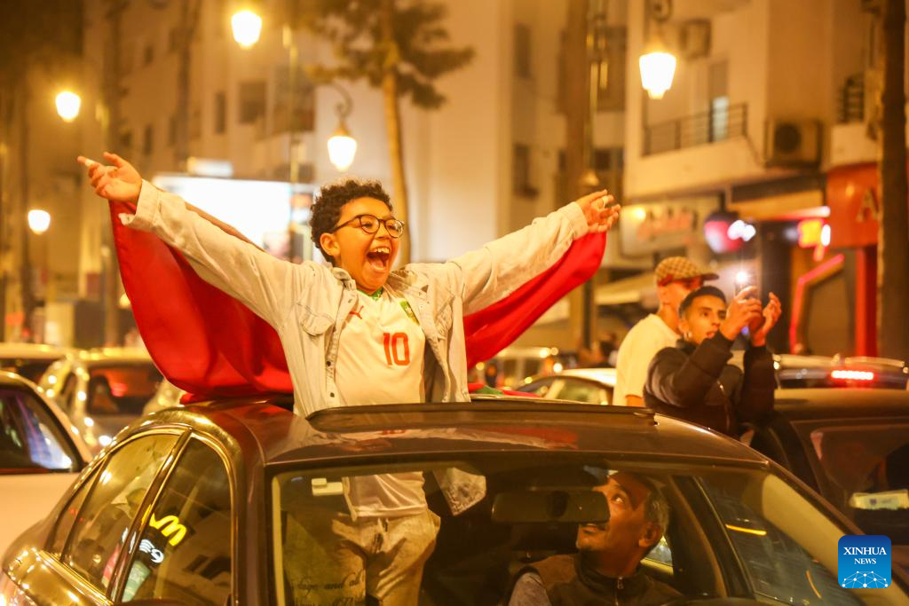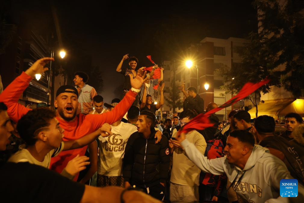 Fans celebrate in Rabat, Morocco, Oct. 20, 2025. Morocco defeated Argentina to win the FIFA U20 World Cup title on Sunday. (Xinhua/Huo Jing)