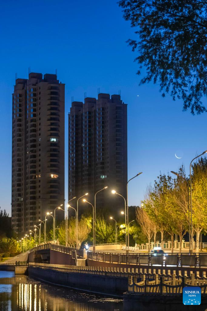 This photo taken on Oct. 20, 2025 shows the planet of Venus next to the moon in the sky over Qiqihar City, northeast China's Heilongjiang Province. (Photo by Wang Yonggang/Xinhua)