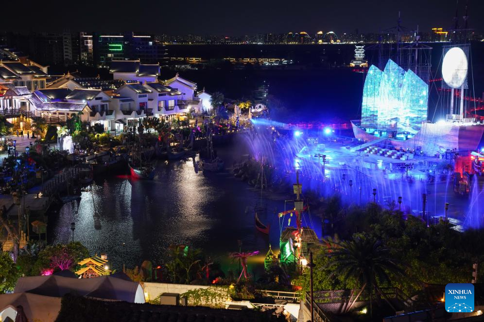 Tourists watch a performance at a scenic area in Hepu County of Beihai City, south China's Guangxi Zhuang Autonomous Region, Oct. 20. 2025.