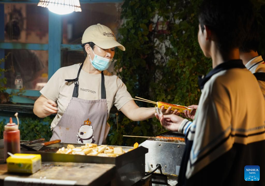 Tourists buy snacks at a scenic area in Hepu County of Beihai City, south China's Guangxi Zhuang Autonomous Region, Oct. 20. 2025.