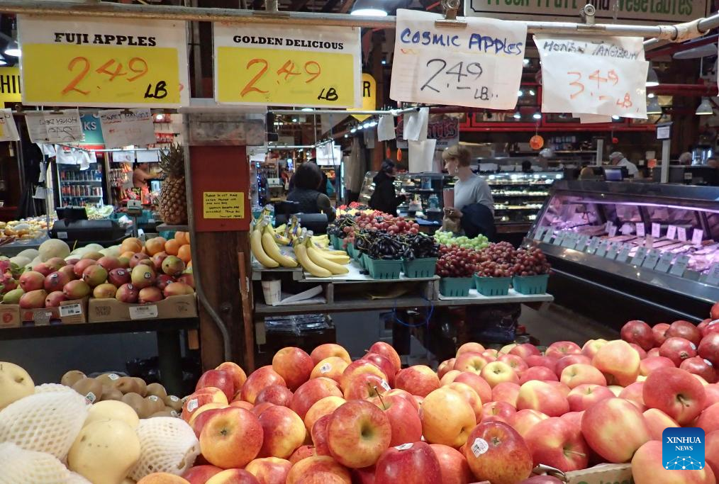 Customers shop at a market in Toronto, Canada, Oct. 21, 2025. (Photo by Zou Zheng/Xinhua)