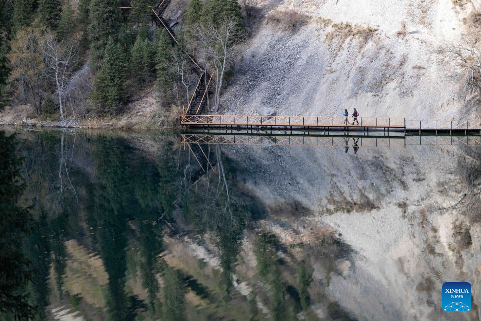 Tourists visit the Kolsai Lakes National Park in Almaty Region, Kazakhstan, on Oct. 21, 2025. (Xinhua/Li Renzi)