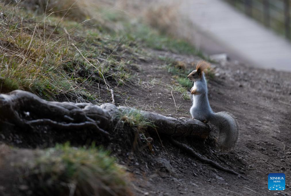 This photo taken on Oct. 21, 2025 shows a squirrel at the Kolsai Lakes National Park in Almaty Region, Kazakhstan. (Xinhua/Li Renzi)