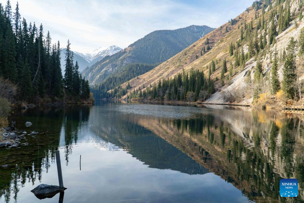 This photo taken on Oct. 21, 2025 shows a view of the Kolsai Lakes National Park in Almaty Region, Kazakhstan. (Xinhua/Jiang Hexuan)