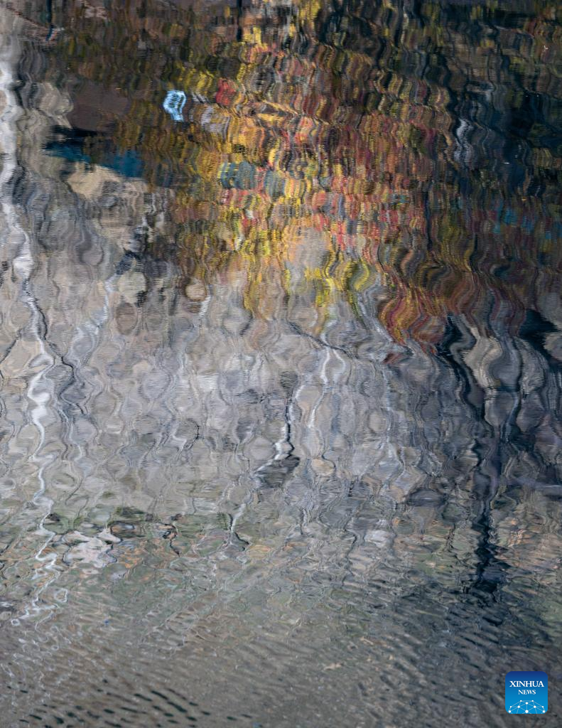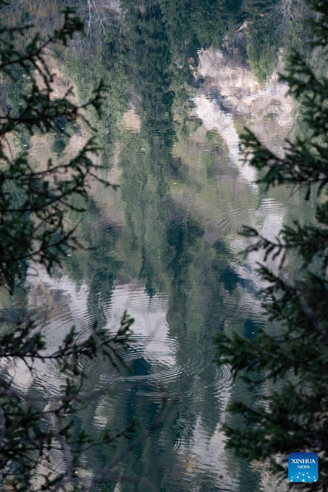 This photo taken on Oct. 21, 2025 shows the reflection of trees in the lake water at the Kolsai Lakes National Park in Almaty Region, Kazakhstan. (Xinhua/Li Renzi)