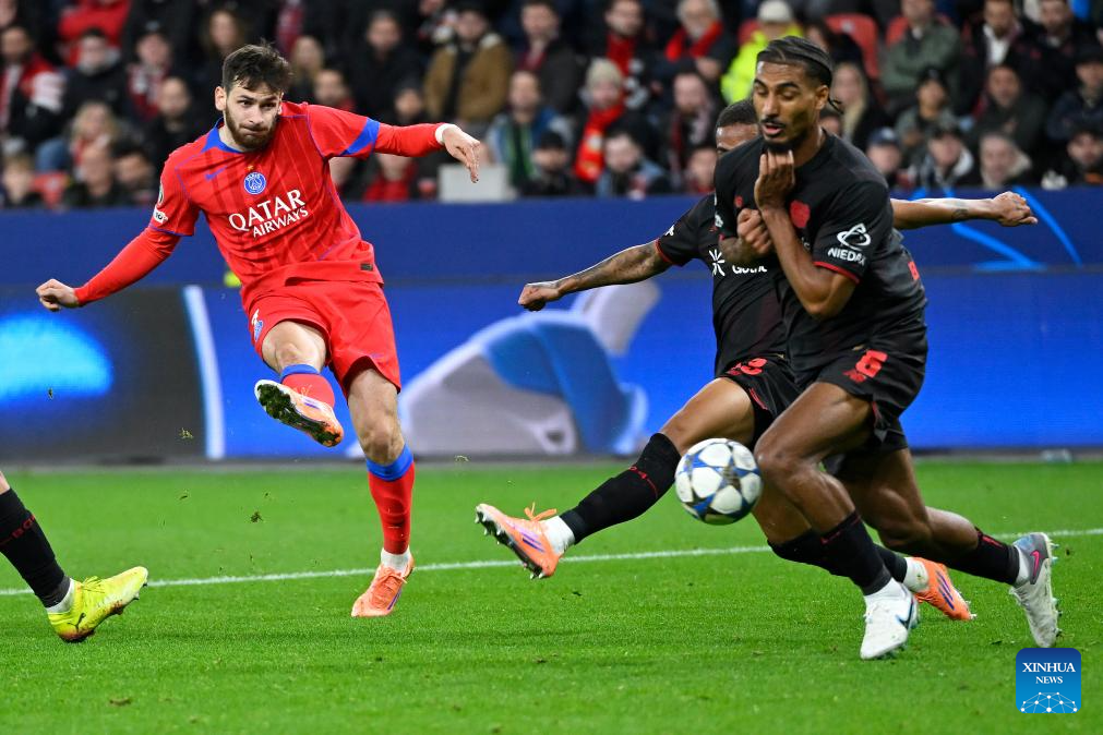 BERLIN, Oct. 21 (Xinhua) -- Paris Saint-Germain showcased its relentless attacking power with a resounding 7-2 victory over Bayer Leverkusen in the UEFA Champions League's league phase on Tuesday.