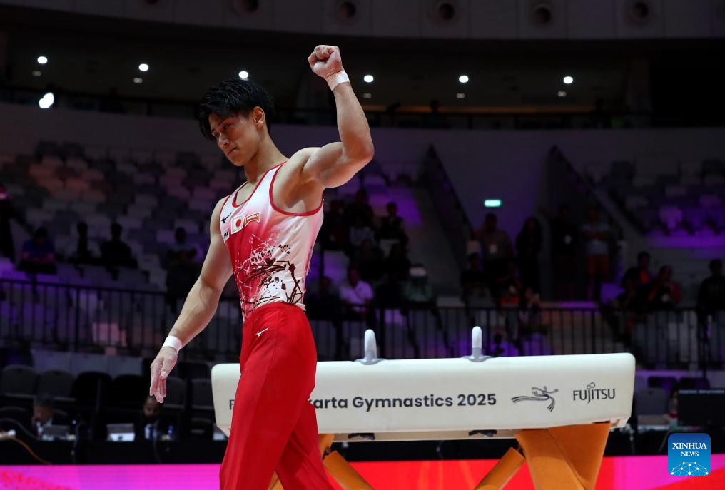 Hashimoto Daiki of Japan competes during the Pommel Horse of Men's All-Round Final at the 53rd FIG Artistic Gymnastics World Championships in Jakarta, Indonesia, on Oct. 22, 2025. (Xinhua/Bai Xuefei)