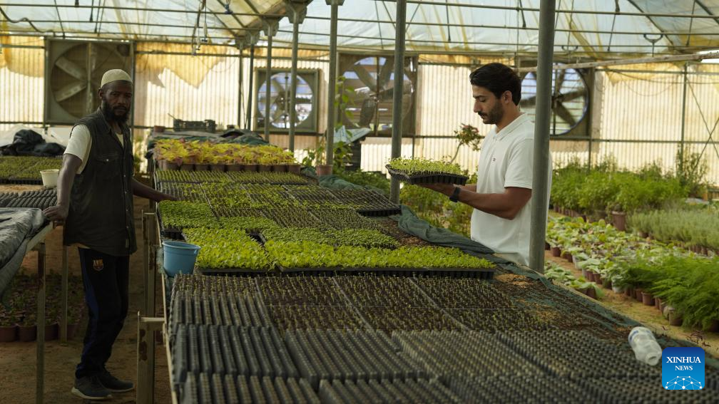 Workers plant vegetables at a hydroponics farm in Tripoli, Libya, Oct. 23, 2025. To alleviate water and arable land shortages, some agricultural technicians in Tripoli have been using hydroponics to cultivate vegetables. (Photo by Hazem Turkia/Xinhua)