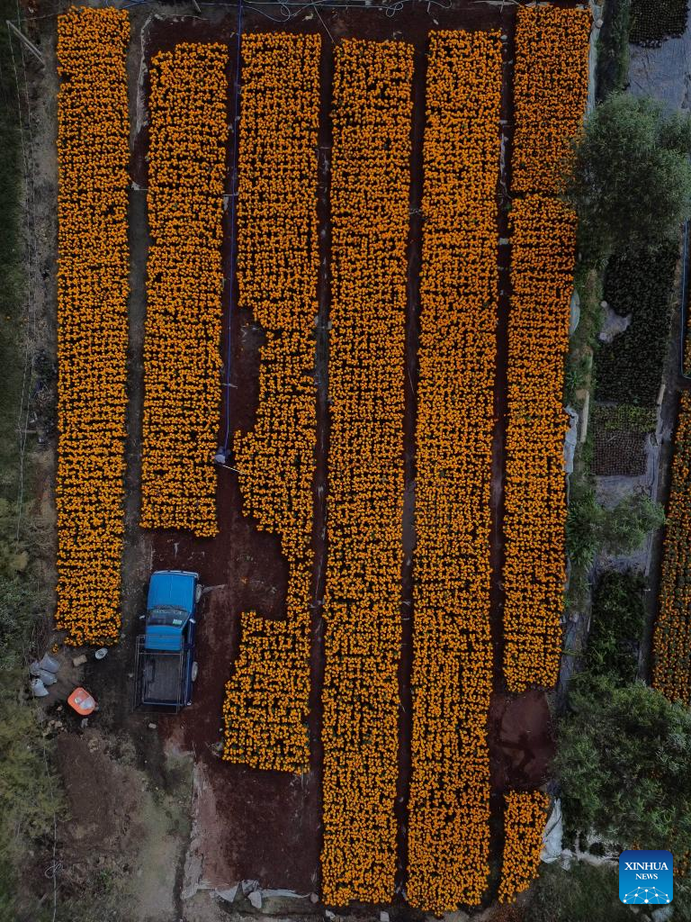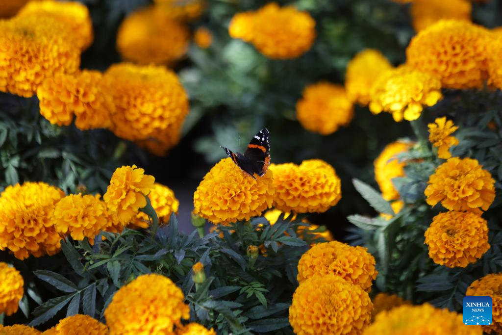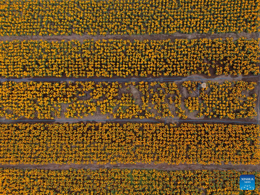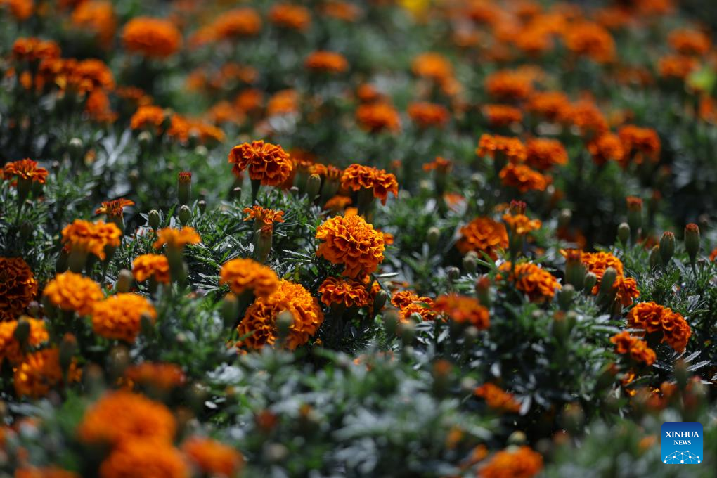This photo taken on Oct. 21, 2025 shows a field of marigold flowers in Mexico City, capital of Mexico. Every year on Nov. 1 and 2, Mexicans celebrate the Day of the Dead. In the days leading up to the festival, fields of marigolds are harvested and brought to markets, eventually adorning streets, homes, and cemeteries across the country. (Photo by Francisco Canedo/Xinhua)