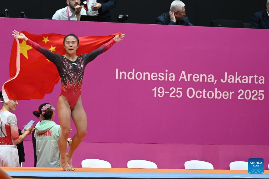 JAKARTA, Oct. 25 (Xinhua) -- China wrapped up the 53rd Artistic Gymnastics World Championships in Jakarta, Indonesia, on Saturday with three gold, one silver and three bronze medals, as Zhang Qingying and Zou Jingyuan claimed gold on the final day of competition.
