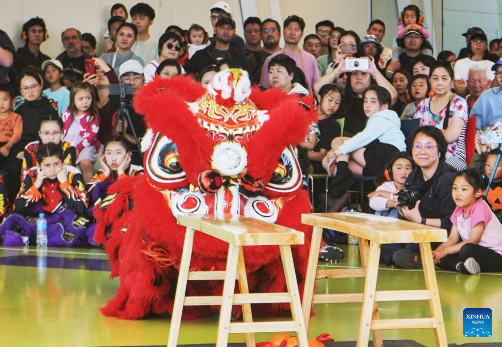 A team competes during the lion dance competition in Christchurch, New Zealand, Oct. 25, 2025. (Photo by Chen Siyumeng/Xinhua)