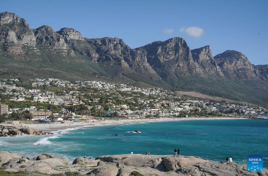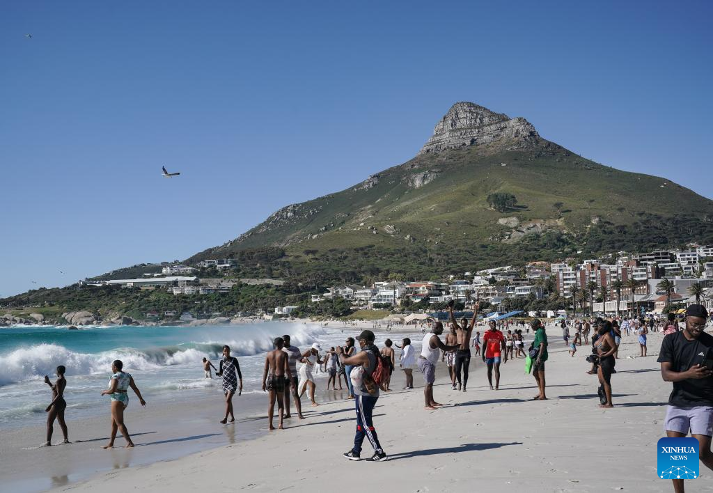 People enjoy leisure time on the beach in Cape Town, South Africa, Oct. 19, 2025. Cape Town, the legislative capital of South Africa and the seat of its Parliament, is renown for its spectacular natural scenery and rich cultural diversity. (Xinhua/Han Xu)