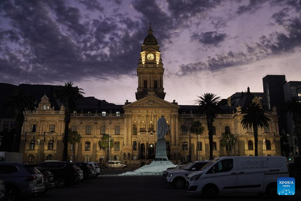 This photo taken on Oct. 24, 2025 shows the Cape Town City Hall in Cape Town, South Africa. Cape Town, the legislative capital of South Africa and the seat of its Parliament, is renown for its spectacular natural scenery and rich cultural diversity. (Xinhua/Han Xu)