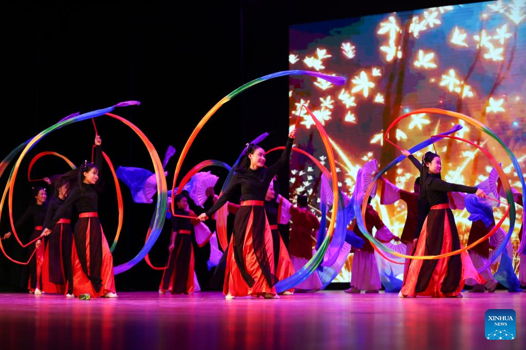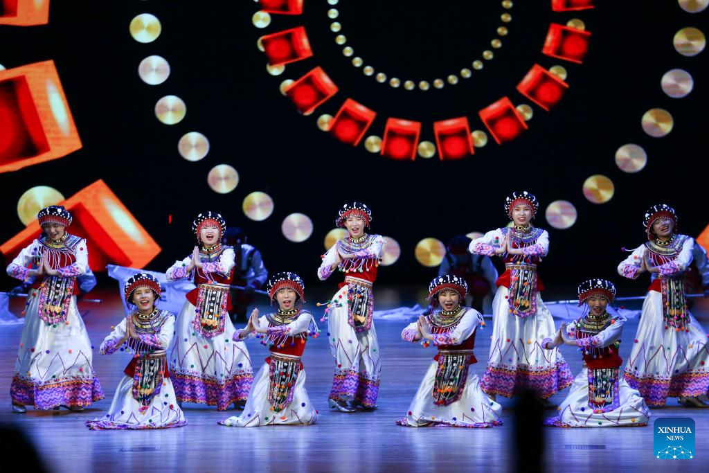 Artists perform during the grand finals and award ceremony of Myanmar's Chinese song competition at the National Theater in Yangon, Myanmar, Oct. 26, 2025. (Xinhua/Myo Kyaw Soe)