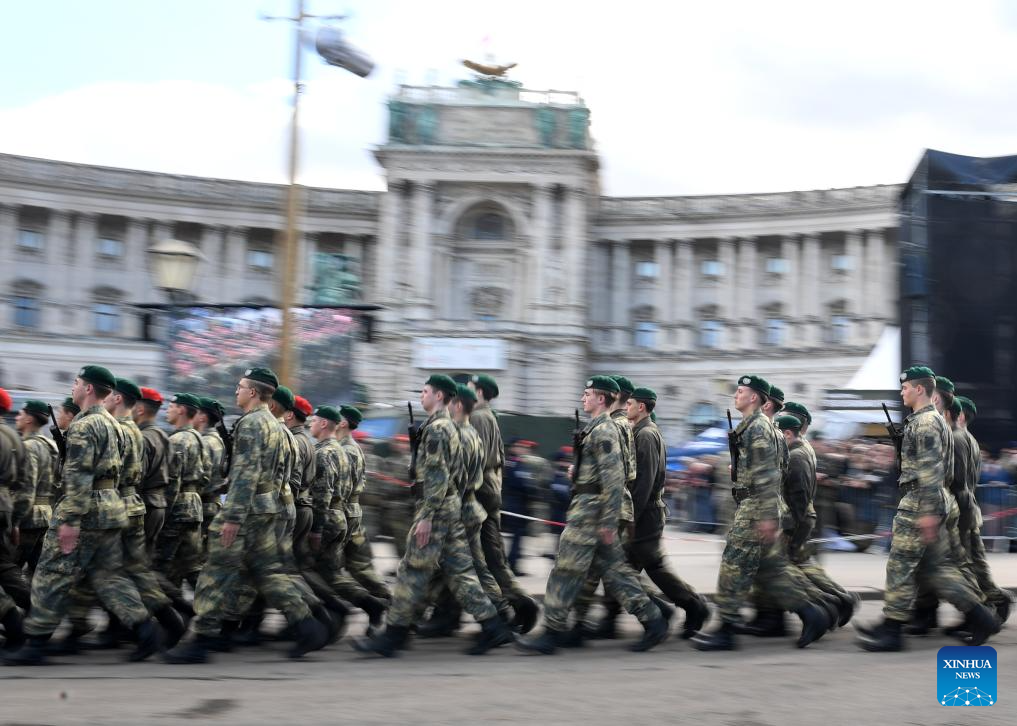 Austrian army recruits participate in the National Day celebrations in Vienna, Austria, on Oct. 26, 2025. (Xinhua/He Canling)