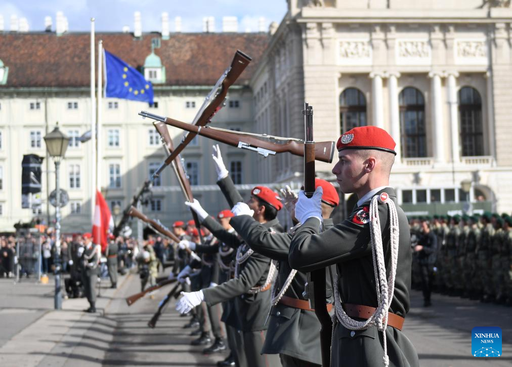 Austrian Guard of Honour perform during the National Day celebrations in Vienna, Austria, on Oct. 26, 2025. (Xinhua/He Canling)