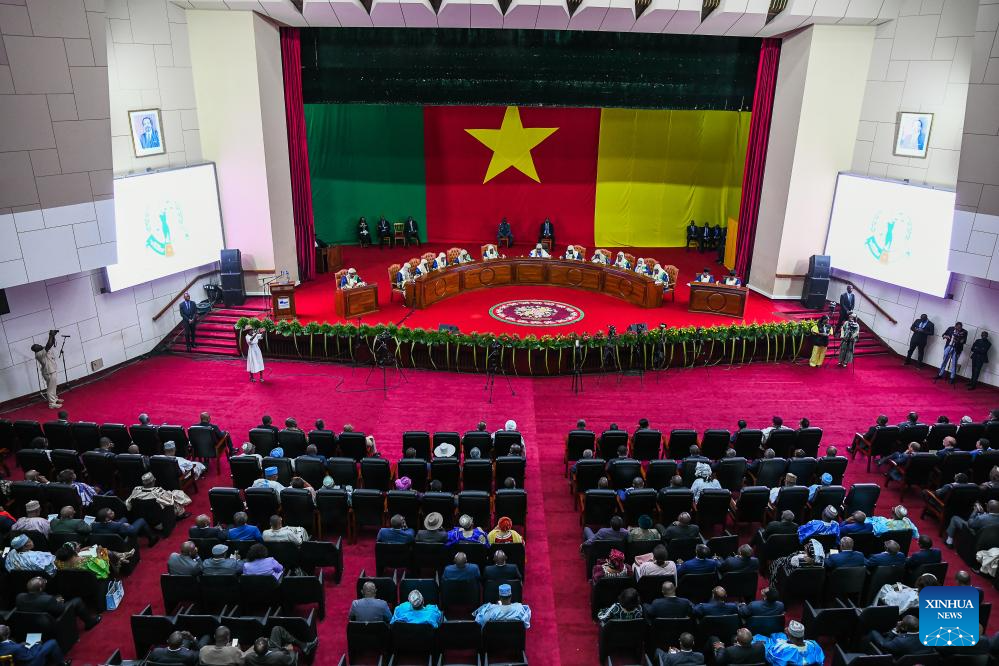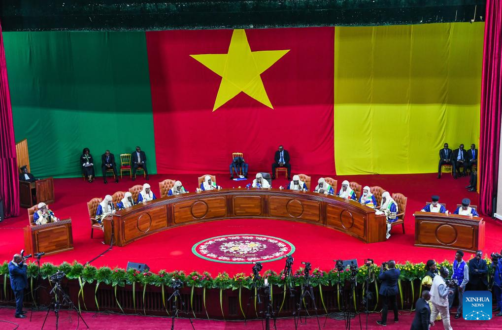 This photo taken on Oct. 27, 2025 shows a view of the courtroom of the Constitutional Council of Cameroon during the official proclamation of the results of the country's presidential election in Yaounde, capital of Cameroon. Paul Biya has been re-elected president of Cameroon for an eighth term, securing 53.66 percent of the votes, the country's Constitutional Council announced Monday. (Photo by Kepseu/Xinhua)