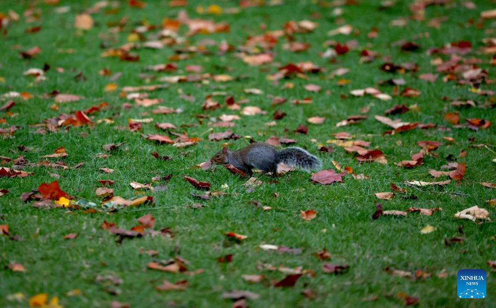 A squirrel is seen in Regent's Park in London, Britain, Oct. 27, 2025. (Xinhua/Li Ying)