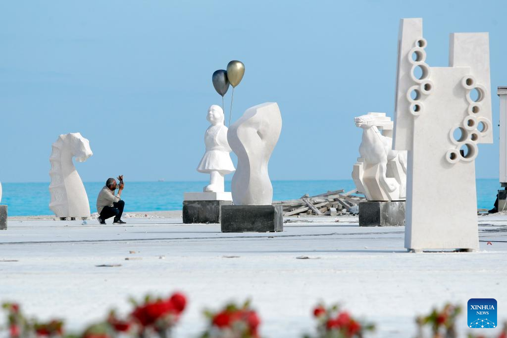 NEW ALAMEIN, Egypt, Oct. 28 (Xinhua) -- Under the Mediterranean sky, rows of white sculptures rise along the seaside promenade of New Alamein, an emerging city. Abstract forms and graceful human figures stand in silent dialogue with the sea, turning the esplanade into an open-air gallery that speaks to New Alamein's modern identity.